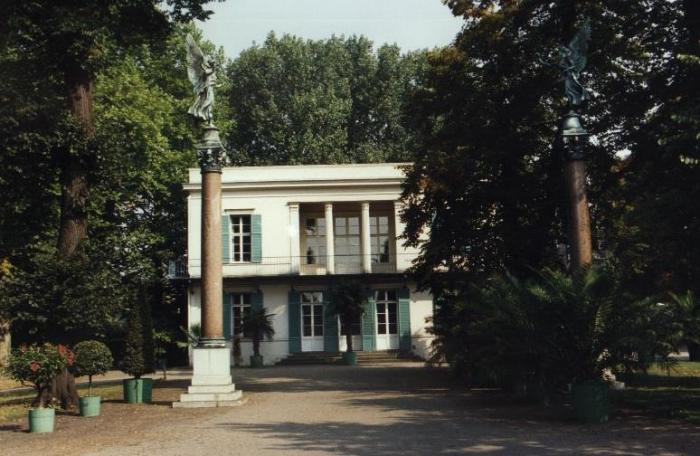 Neuer Pavillon im Schlossgarten CharlottenburgDer Neue Pavillon wurde 1825 in der Art eines italienischen Landhauses für König Friedrich Wilhelm III. errichtet. Der Architekt war Karl Friedrich Schinkel. Heute sind im Neuen Pavillon Kunstgegenstände und Innendekorationen des 19. Jahrhunderts ausgestellt. |